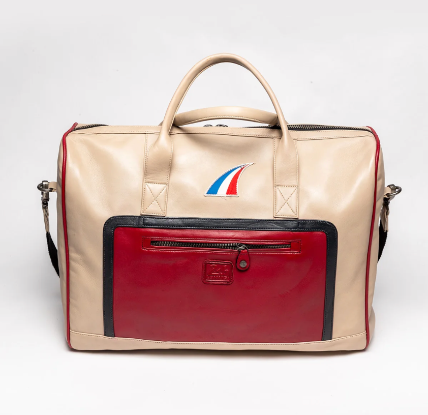 Sac week-end 24H Le Mans - cuir - écru et rouge racing