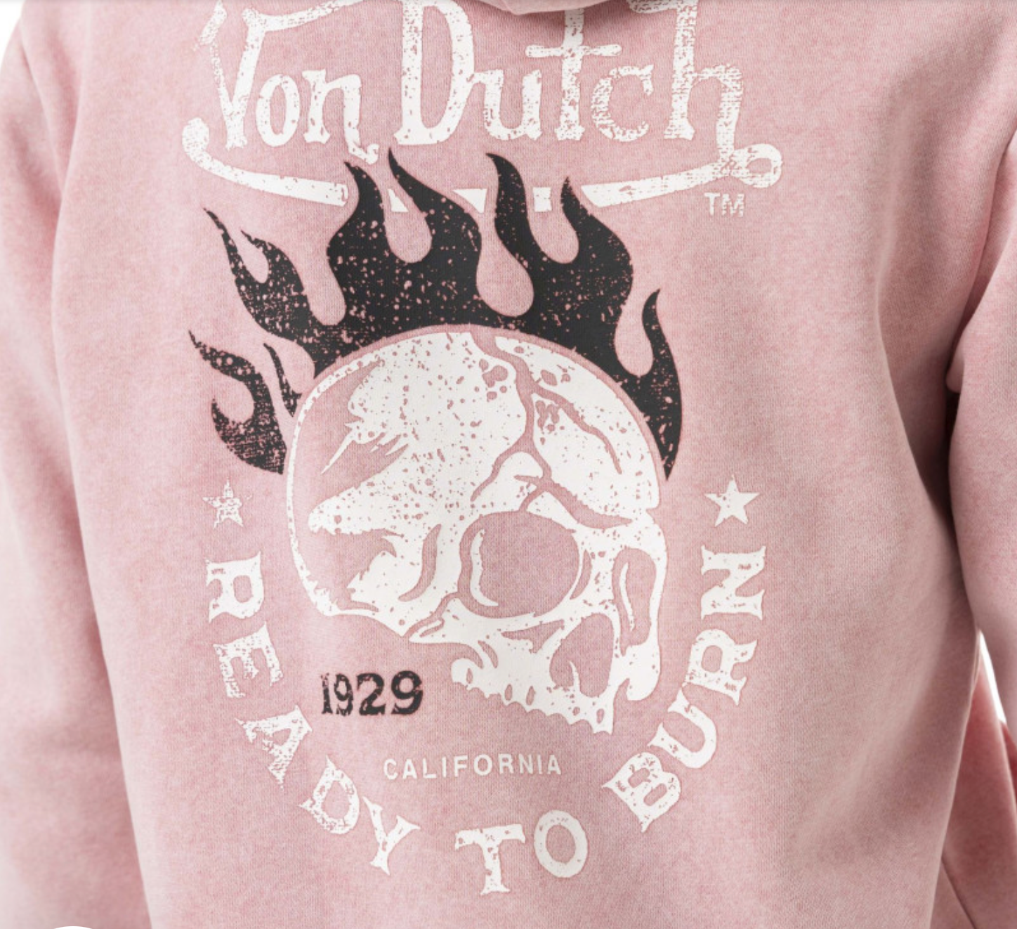Le sweat zippé rose Von Dutch, une pièce oversize qui reprend l’esprit rebelle des années 2000.